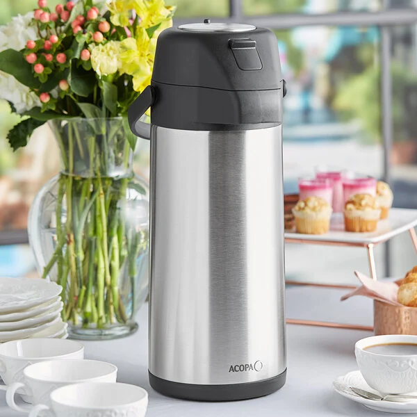 This commercial-grade, heavy-duty airpot is the perfect addition to offices, coffee shops, and buffet tables! This airpot keeps coffee, tea, or hot chocolate warm for 4-6 hours. It's great for establishments that need to serve hot beverages over a long period of time, and it helps to reduce waste since the beverages won't become cold as fast.