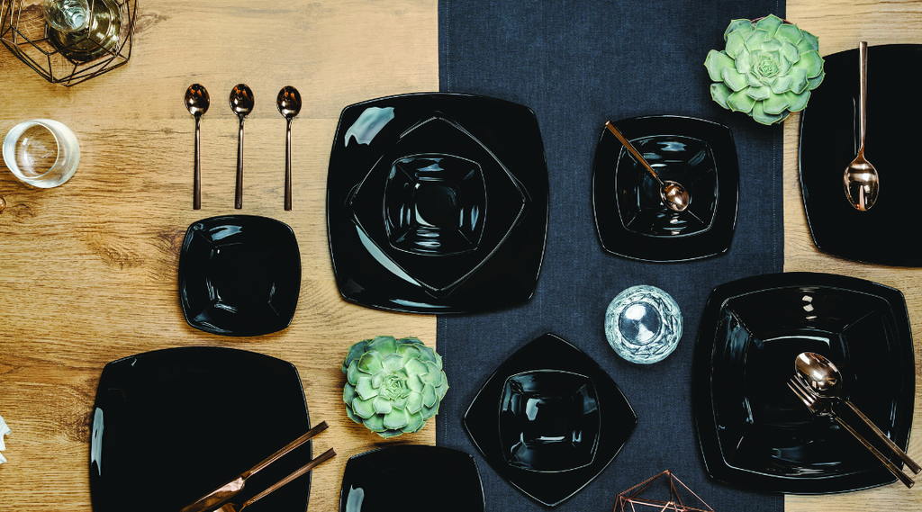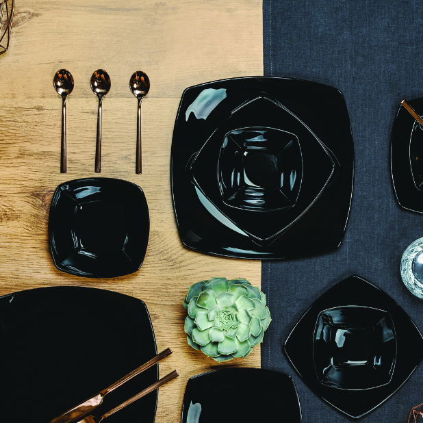 The Bormioli Rocco Eclissi Nero Collection brings a touch of refined mystery to your table setting. Featuring plates and bowls with delicately squared shapes, its sleek black design embodies minimalist Japanese elegance. Crafted from durable, long-lasting glass, this collection combines contemporary style with lasting quality, ensuring your dining experience is both sophisticated and impactful. Elevate your mise en table with the bold simplicity of Eclissi Nero.