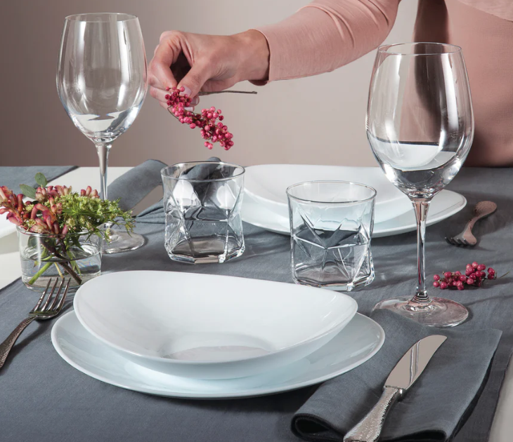 The Bormioli Rocco Prometeo Collection features dinner plates crafted from white tempered opal glass, combining elegance with durability. Their unique, sinuous shapes and sophisticated texture enhance any table setting, from modern minimalism to classic styles. Resistant to temperature changes and easy to clean, these plates offer both style and practicality, making them perfect for serving main or second courses with lasting quality.