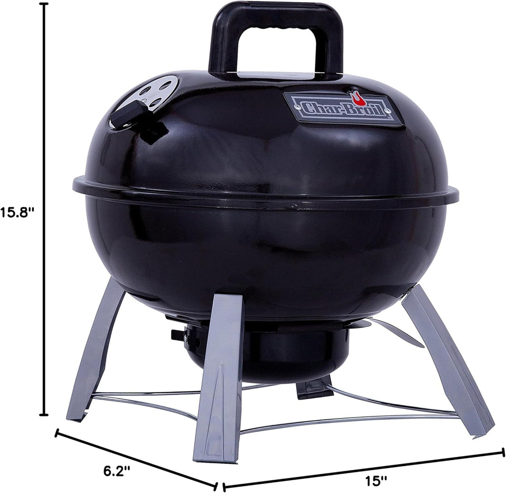 Meet your new grilling sidekick - the Charbroil 14" Portable Table Top Charcoal Grill! With 150 square inches of cooking magic on porcelain-coated grates (they're like superhero surfaces - rust-resistant and easy to clean!), you'll be flipping burgers with glee! Play temperature wizard with the adjustable dampers, and no more ash-mess stress thanks to the pull-out drawer. The sneaky front door lets you add more charcoal without losing precious heat - genius! Built tough with heavy-gauge steel and sporting adorable wood handles, this little grill is ready for adventure wherever your taste buds take you!