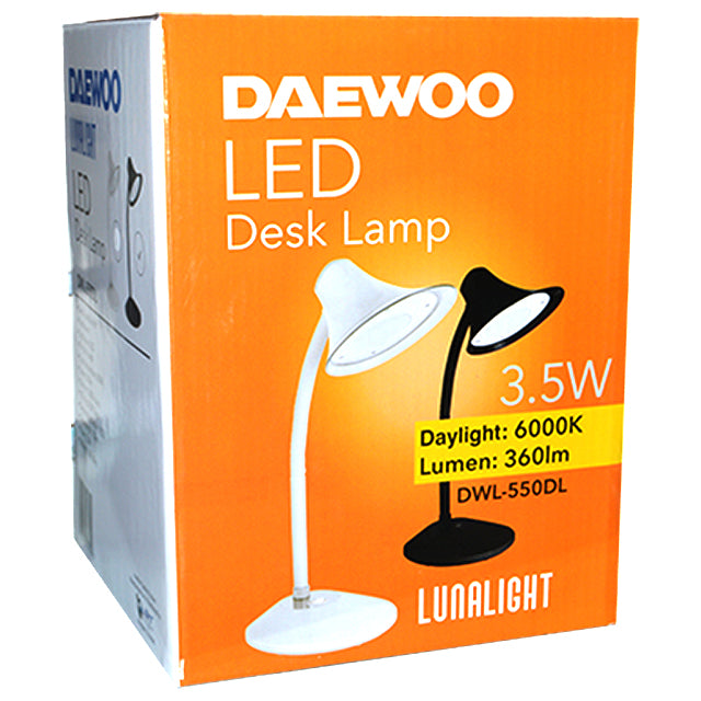 Unleash your productivity with the Daewoo Flexible Desk Lamp! This LED lamp has a powerful 3.5 watt output, providing bright and energy-efficient lighting for your desk. Its flexible design allows for easy adjustment, giving you the freedom to work comfortably wherever you are. Take on your tasks with confidence and conquer the day ahead!