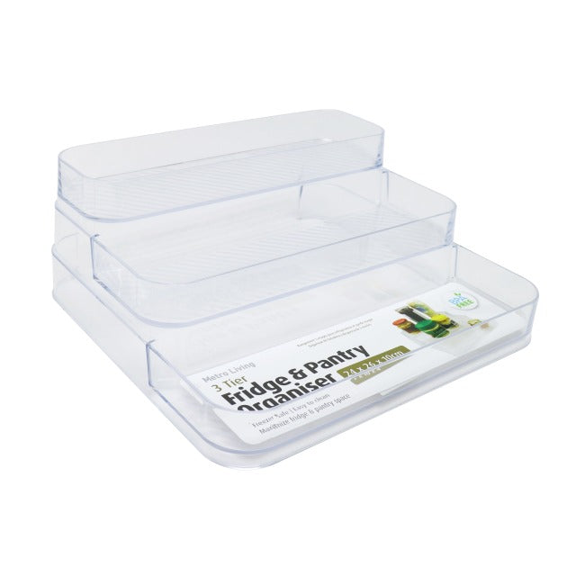 Organize and maximize available space in your fridge and pantry with our Fridge & Pantry Organizer! With an easy-to-install and adjustable 3 tier design, it's the perfect solution for storing and sorting spices, condiments, and more. Create more room and organize your kitchen with this space-saving organizer!