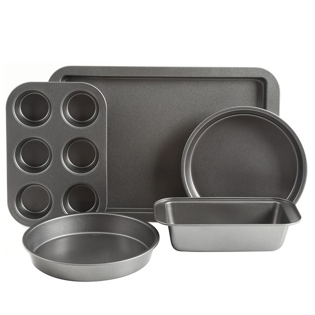 Make your baking experience easier and more delicious with the Gibson Love To Bake 5pc Bakeware Set. With its carbon steel construction, this set ensures even heating and consistent baking results. The non-stick surface also makes for easy cleaning, a must-have for both experienced and beginner bakers. Perfect for cakes and other treats, this set is a must-have for any kitchen.