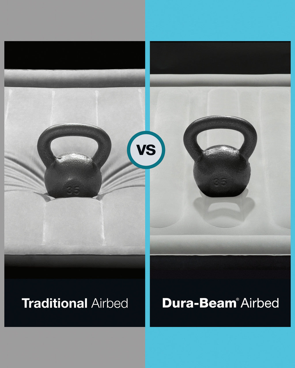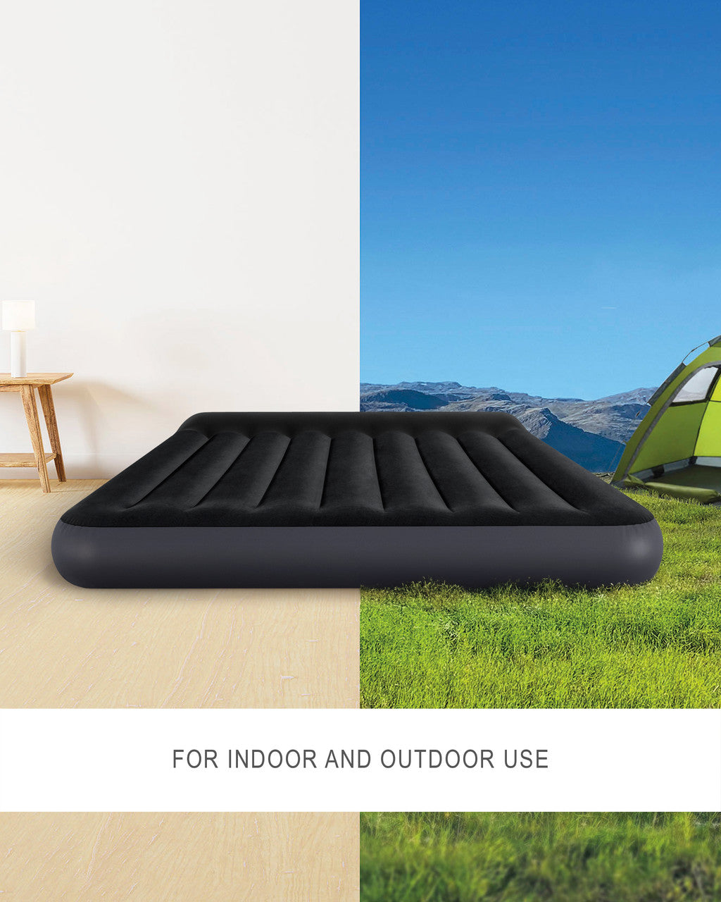 Indulge in an uncommonly satisfying night’s sleep, indoors or outdoors. The Dura-Beam® Standard Pillow Rest Classic Air Mattress comforts like a proper guest bed but can tough it out in a camping situation, too. A built-in pillow on one end elevates your head for an additional bed-like experience. Meanwhile, thousands of non-stretch fibers inside offer enhanced support—that’s the Fiber-Tech® advantage other air mattresses don’t have. Limited edition bundle includes 2 free pillows with purchase while supplies last. Limited stock available. Only available online at INTEXcorp.com!