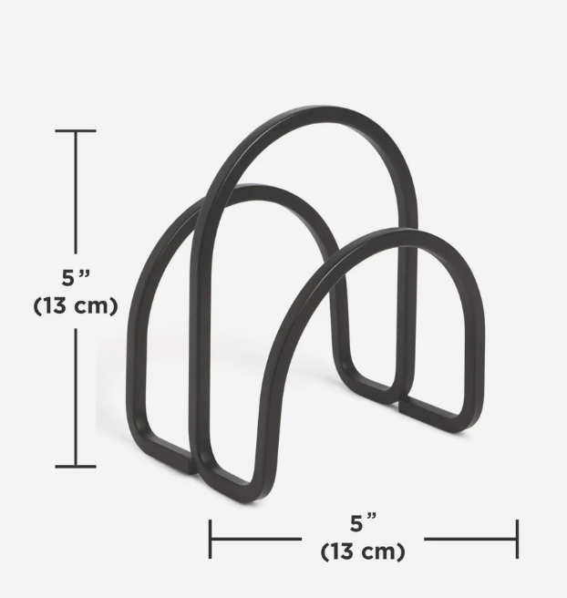 A contemporary take on a classic aesthetic, this Napkin Holder has the look of cast iron but its continuous square wire creates a graphic line that is all modern. Squire Napkin Holder makes keeping napkins on hand, neat and organized easy to do. Its divider supports your napkins, makes them easy to organize and doubles as a handle, making it easy to move around. This modern piece looks great as an accessory in your kitchen or at a cocktail party. Squire's compact design measures 4.88 x 3.88 x 5.8" (12 x 10 x 15 cm) so it won’t take up too much space on your table or countertop but will still make an impact. Squire is made of bent metal and comes in Black. This napkin holder is made with an eco-friendlier finish. It produces 85% less water and solid waste than traditional electroplating finishes.
