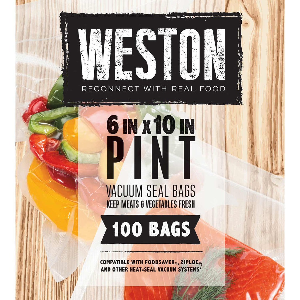 Maximize freshness and minimize waste with Weston Vacuum Seal Bags. Each package includes 100 bags specifically designed to be used with food sealing machines. Keep your meat and vegetables fresher for longer with this essential kitchen tool.