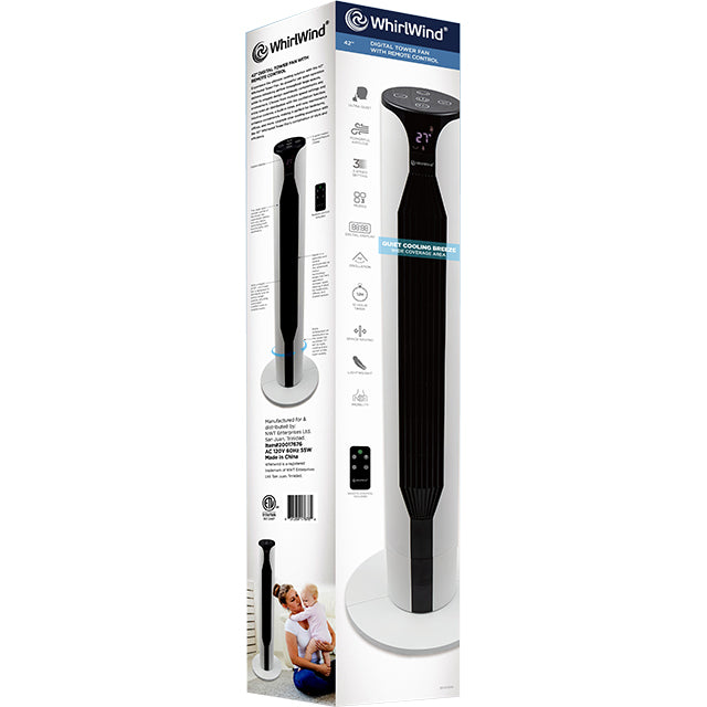 Designed with space-saving efficiency in mind, this tower fan is both lightweight and mobile, making it easy to move and position wherever cooling relief is needed. Embrace a new level of comfort and convenience with the Whirlwind 42" Digital Tower Fan, the perfect blend of style and functionality for your living space.